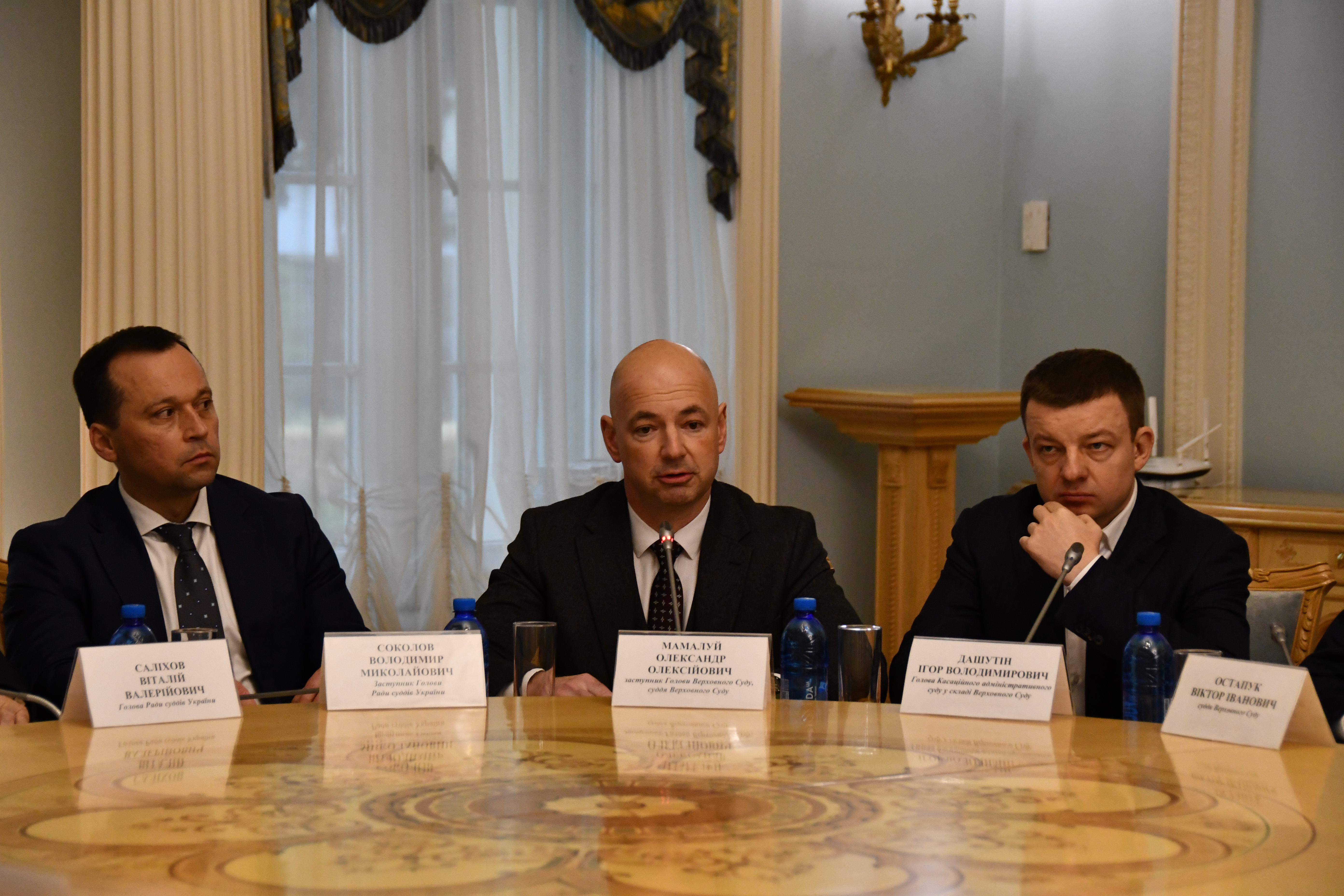 Відтак свої вітальні слова й очікування озвучили: представник Уповноваженого Верховної Ради з прав людини в системі судоустрою з права на справедливе правосуддя та представництва в Конституційному Суді України Андрій Овсієнко; заступник Голови Верховного Суду Олександр Мамалуй; Голова Касаційного адміністративного суду у складі Верховного Суду Ігор Дашутін та Голова Державної судової адміністрації України Максим Пампура.