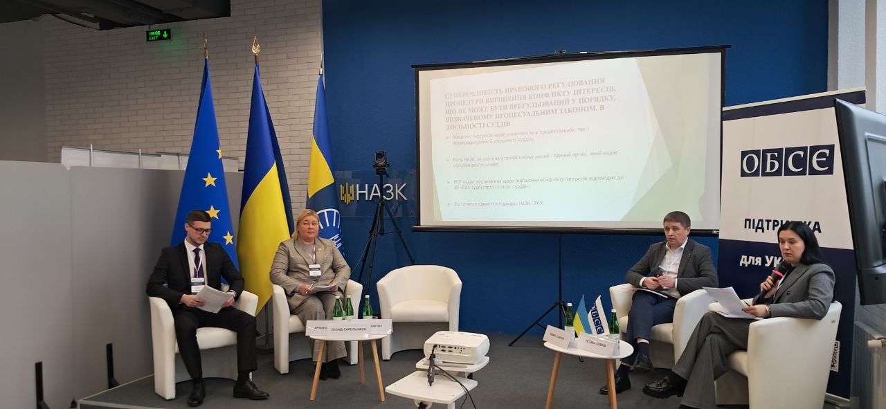 Власне, обговоренню питань ризиків у сфері правосуддя були присвячені дві панелі: "Суддівська кар'єра: ідентифікація та шляхи мінімізації корупційних ризиків" та "Суддівське самоврядування та фінансове забезпечення судів: ідентифікація та шляхи мінімізації корупційних ризиків".